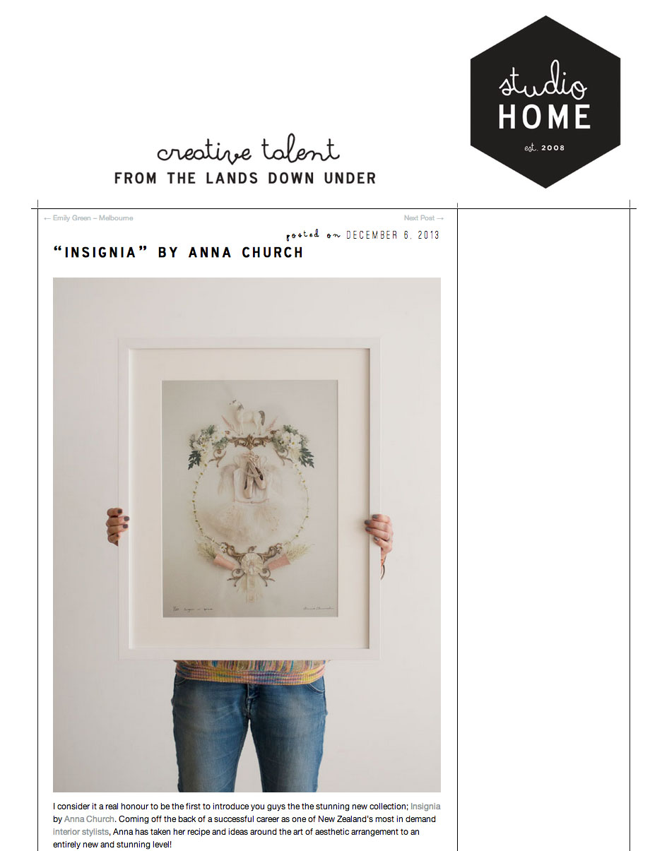 One of my favourite online blogs Studio Home Online giving me some lovely exposure!